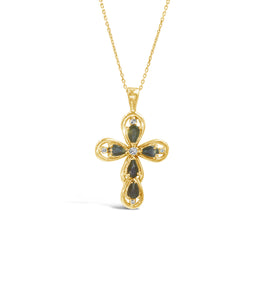 14K Yellow Gold Cross Pendant w/Blue Sapphires and Diamonds